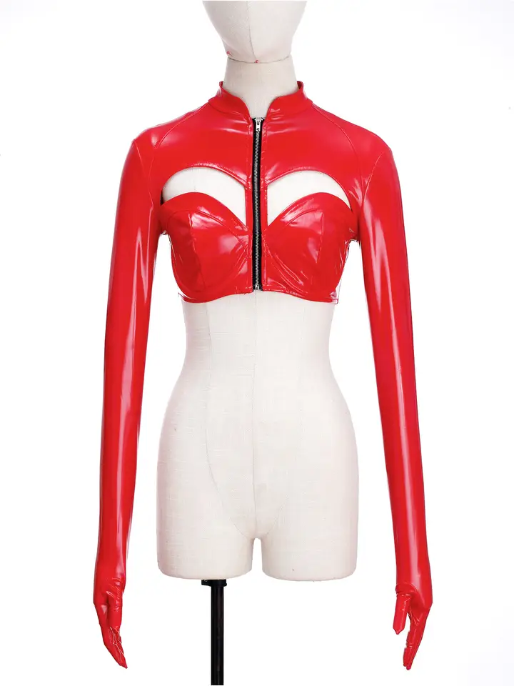 Womens Glanzend PU Leer Latex Crop Tops Halter Front Hollow Out Back Zip Nat Uitziende Tops Clubwear Raves bar pole dance tops